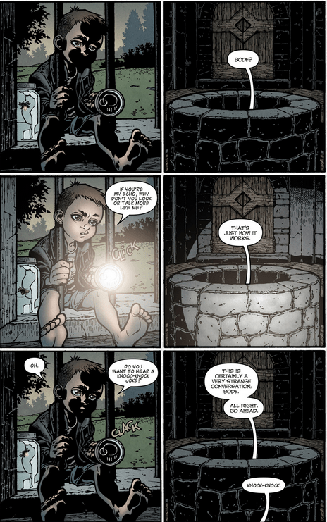 But I had really forgotten how freakin’ dark this first volume is. From the attack on the Locke Family at the beginning to Sam’s cross country murder spree after he is set free by the well demon, I found this volume harder to read now than it was the first time I dove in. I will say that some of the worse stuff is left off page in terms of graphic content (specifically Nina Locke’s rape, and it is a relief that we didn’t have to see it), but Hill absolutely pulls out the horrors in the aftermath of it all. I don’t remember the rest of this series being this upsetting, but who knows, maybe I blocked it out? My point is that there are lots of content warnings here. None of this seems exploitative to me in how Hill writes it, but it’s still disturbing.