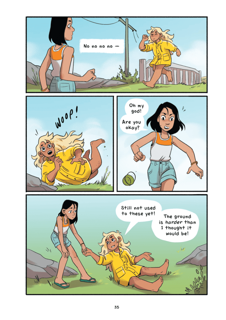 “The Girl from the Sea” is a gentle fantasy story, one that charmed me almost immediately and kept a smile on my face as I read. I felt that Ostertag did a really good job of portraying the turmoil within Morgan, and how her relationship with Keltie, a human disguised selkie, helped her open up and accept herself. Keltie is as simplistic and genuine as you would expect her to be, but I thought that Morgan has a lot of nuance and complexity in which she does have her reasons to not come out to her loved ones, but some of it may very well be a bit of projection on her part. Having her encounter with Keltie and be drawn to her, and perhaps start to fall in love with her, is a nice dynamic, as Keltie is incredibly free in herself, while Morgan is not. I also thought that Ostertag was good about showing how complicated coming out can be for a person, even when her friends and family are, for the most part, loving and supportive. Morgan is not only dealing with her own identity and how to express it, but she is also dealing with a recently split up family dynamic, and how that pain is affecting her and her mother and brother. The undercurrent of that trauma is always present, either through Morgan’s insecurities, or through implied anger and aggression issues her brother has been displaying. Morgan has a lot on her plate, and she compartmentalizes in a fairly realistic way.