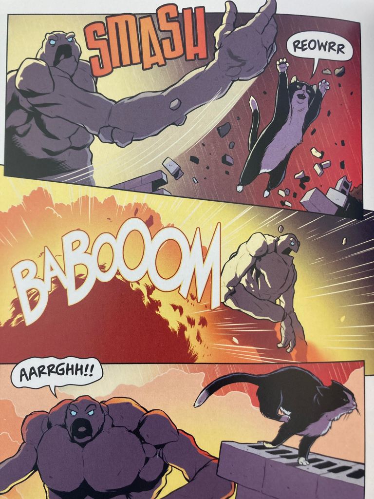 I really liked all of the pages that made up the final conflict between the Animorphs and Visser Three in his alien morph. But this one stood out for the sheer joy of the absurdity of it all. I mean, take that picture out of context. Just look at it. The crazy rock monster. The speech bubbles of the cat growling and alien roaring. The cat’s crazy Superman jump featured prominently in the top right corner. It’s all so whacky and fun, and I think it’s a perfect visual representation of the sheer joy that these books are to read, especially to younger audiences. In no other series of books are you going to get anything remotely like what Animophs has to offer.